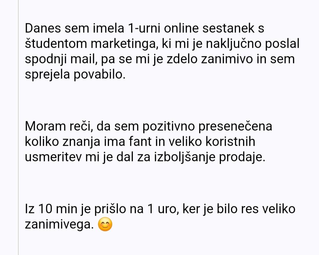 - Odgovorim na kakršnakoli vprašanja, ki jih imaš o marketingu.