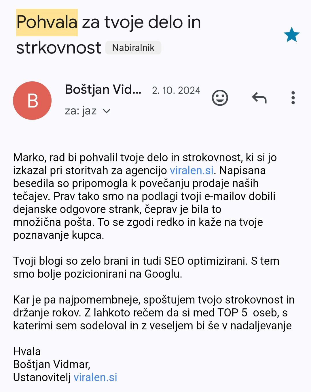 - Ti mi pošlješ ime svojega podjetja in tvoje marketing materiale.