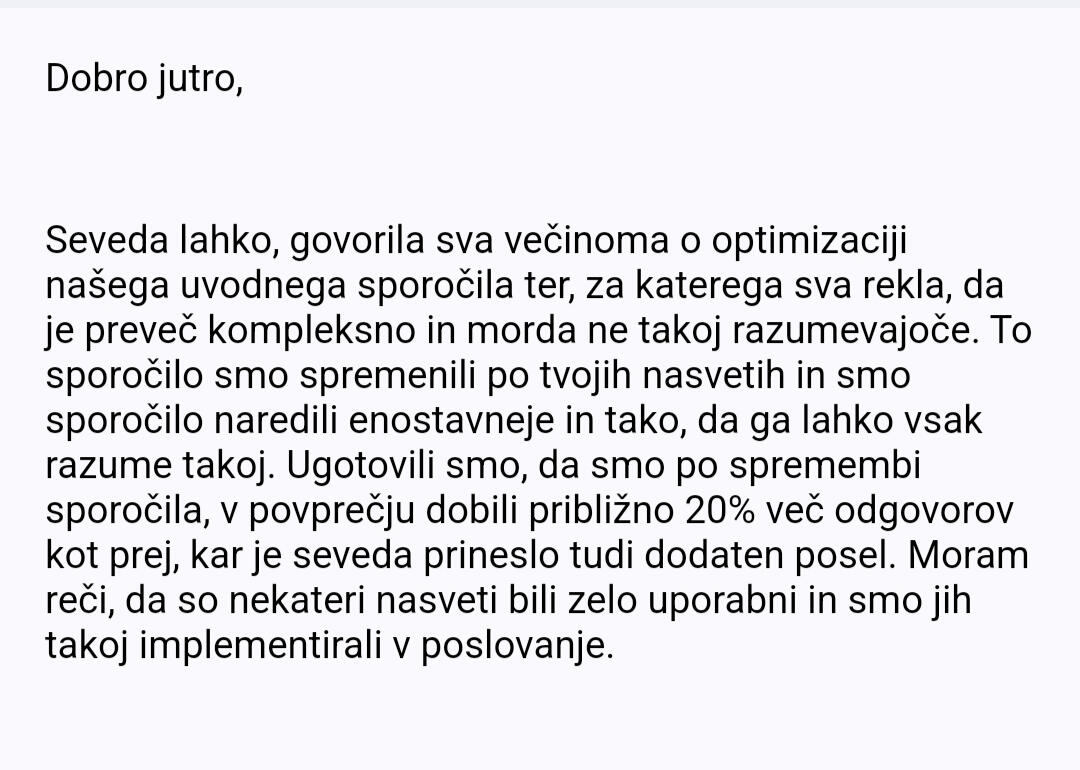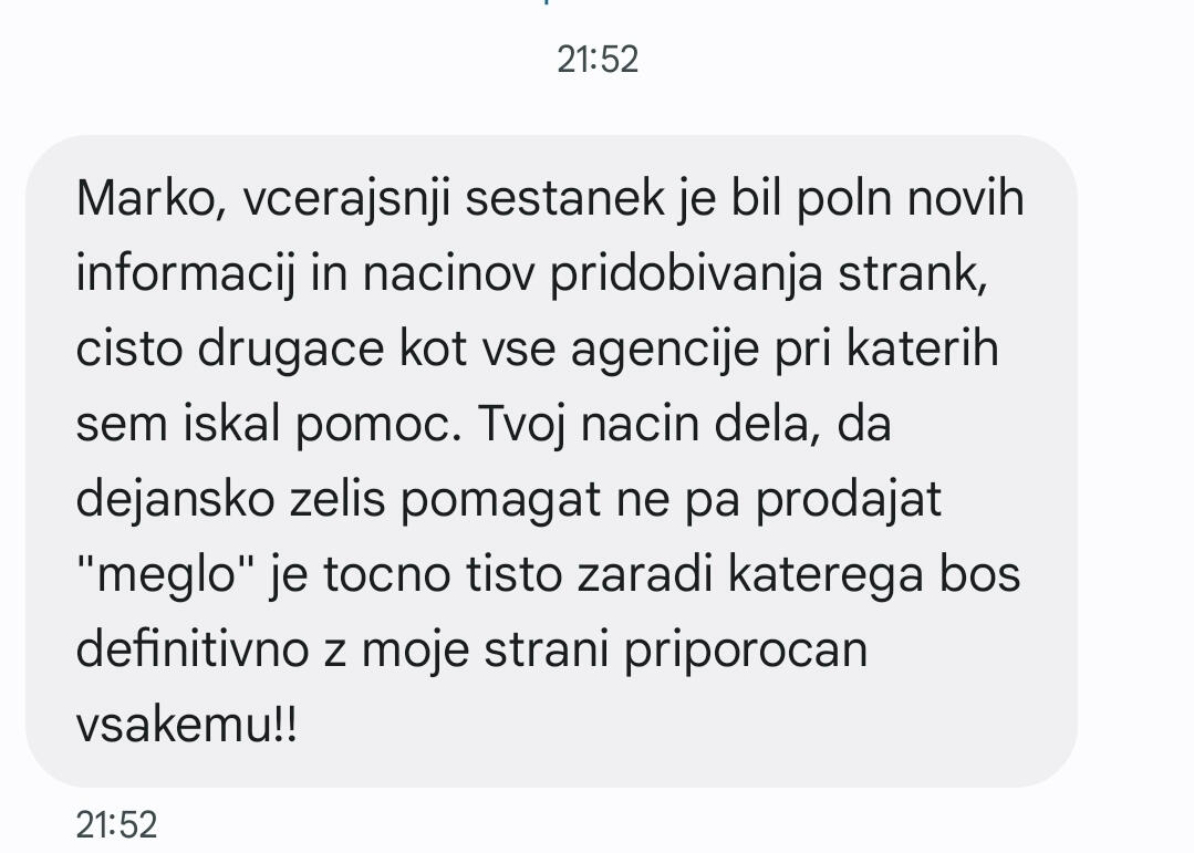 - Ti mi pošlješ ime svojega podjetja in tvoje marketing materiale.